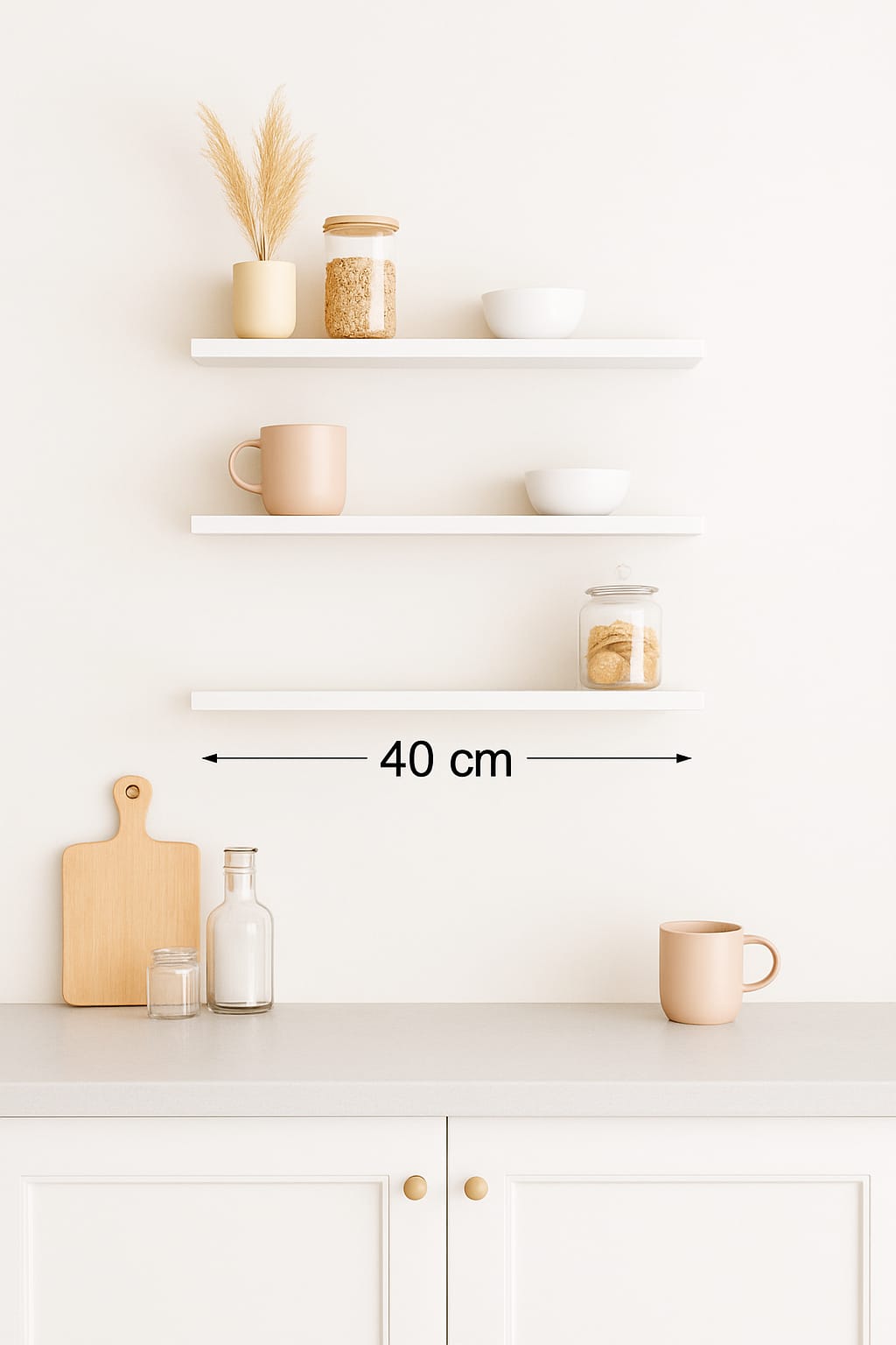 40 Cm 3lü Mat Beyaz Mdf Uçan Duvar Rafı
