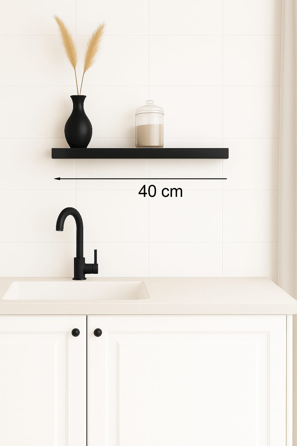 40 Cm Mat Siyah Mdf Uçan Duvar Rafı