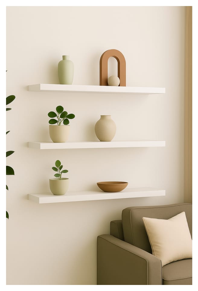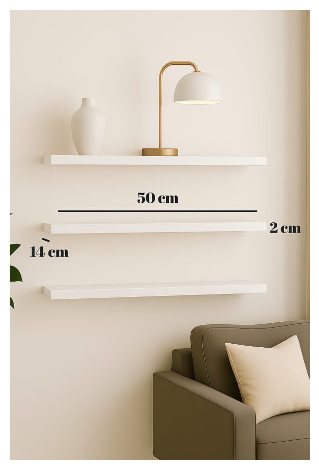50 Cm Mat Beyaz 3lü Mdf Uçan Duvar Rafı