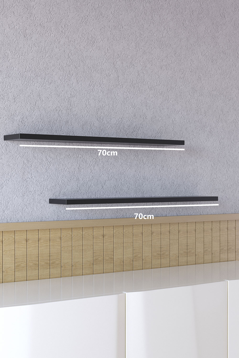 70 Cm 2li Mat Siyah Mdf Uçan Duvar Rafı