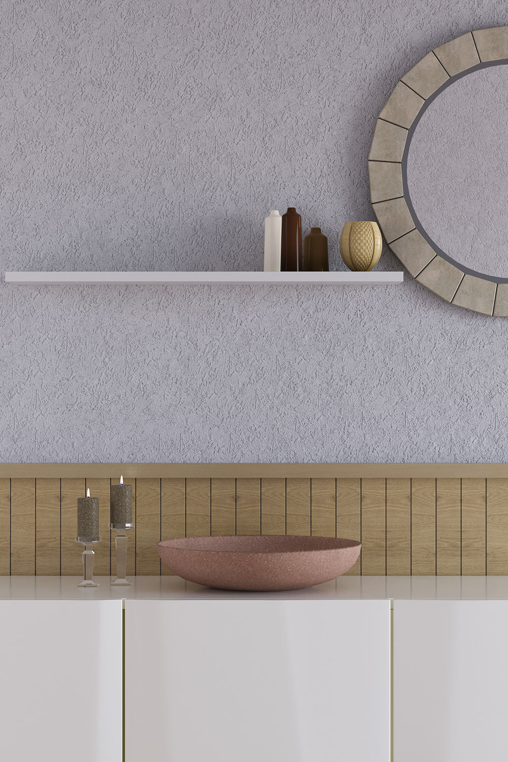 Raf, duvara gizli bağlantı aparatları ile kolaylıkla monte edilmektedir. Böylece hiçbir bağlantı elemanı (vida, dübel) görünmez.