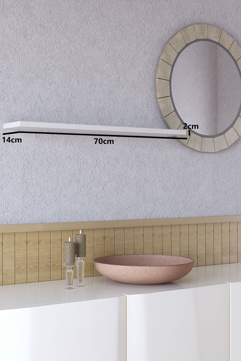 70 Cm Mat Beyaz Mdf Gizli Bağlantı Dekoratif Duvar Rafı