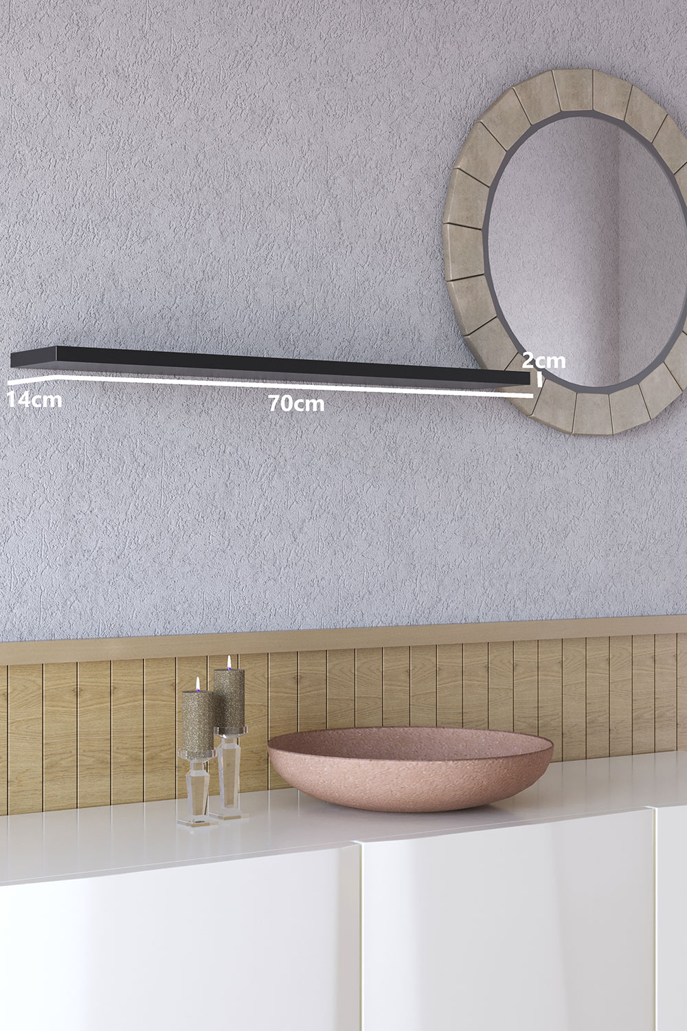 70 Cm Mat Siyah Mdf Uçan Duvar Rafı