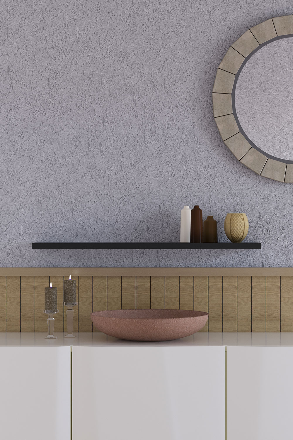 Raf, duvara gizli bağlantı aparatları ile kolaylıkla monte edilmektedir. Böylece hiçbir bağlantı elemanı (vida, dübel) görünmez.