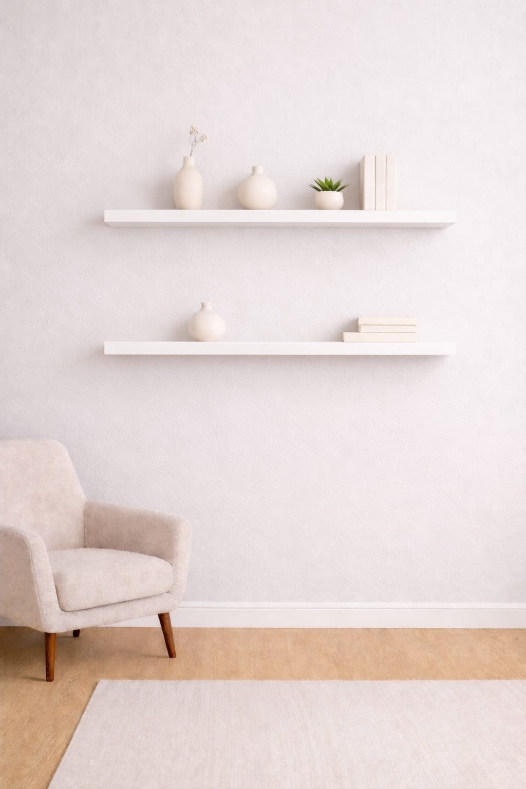 Raf, duvara gizli bağlantı aparatları ile monte edilmektedir. Böylece hiçbir bağlantı elemanı (vida, dübel) görünmez.